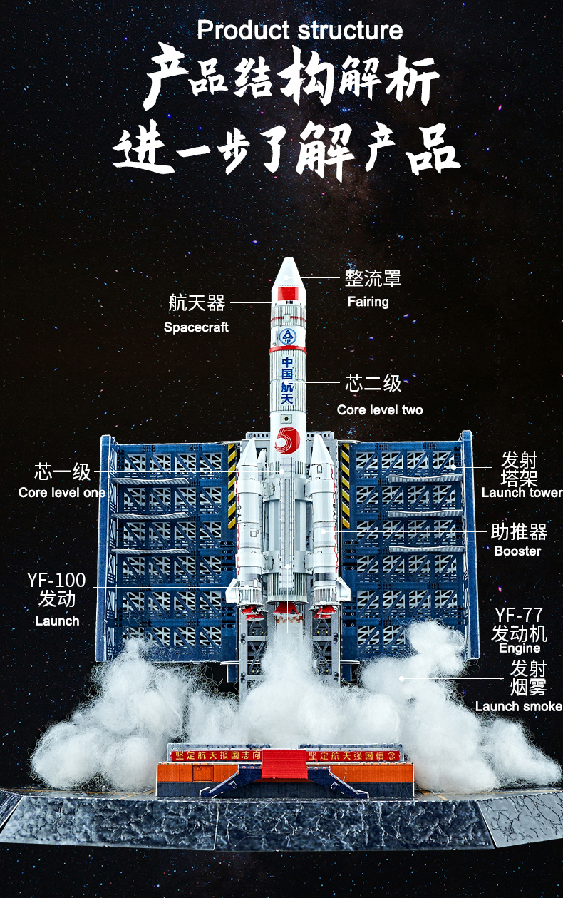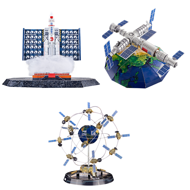 IRON STAR Aerospace series (Long March 5 Series Launch Vehicle+Chinese Space Station+Beidou Navigation Satellite System) Diy 3D Metal Puzzle Assemble Model Cars Kits Laser Cut Jigsaw Toys H32204+H32205+H32206