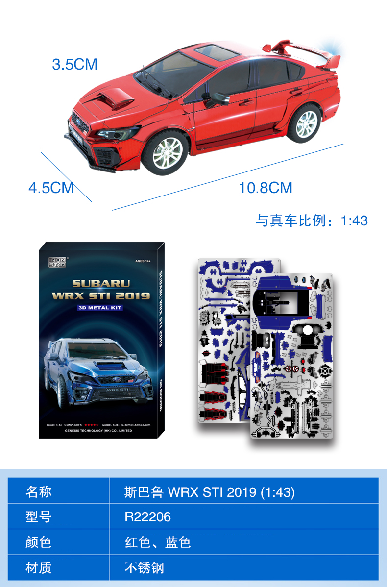 Name: Subaru WRX STI 2019 3D Metal Model cars Kits