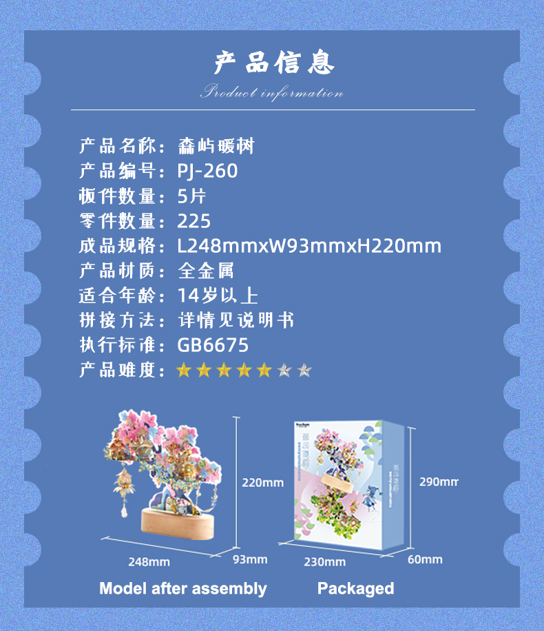 1 x Picture Kingdom Senyunuanshu(Tree House) PJ-260 3D DIY Metal Model Kits Puzzle Toy