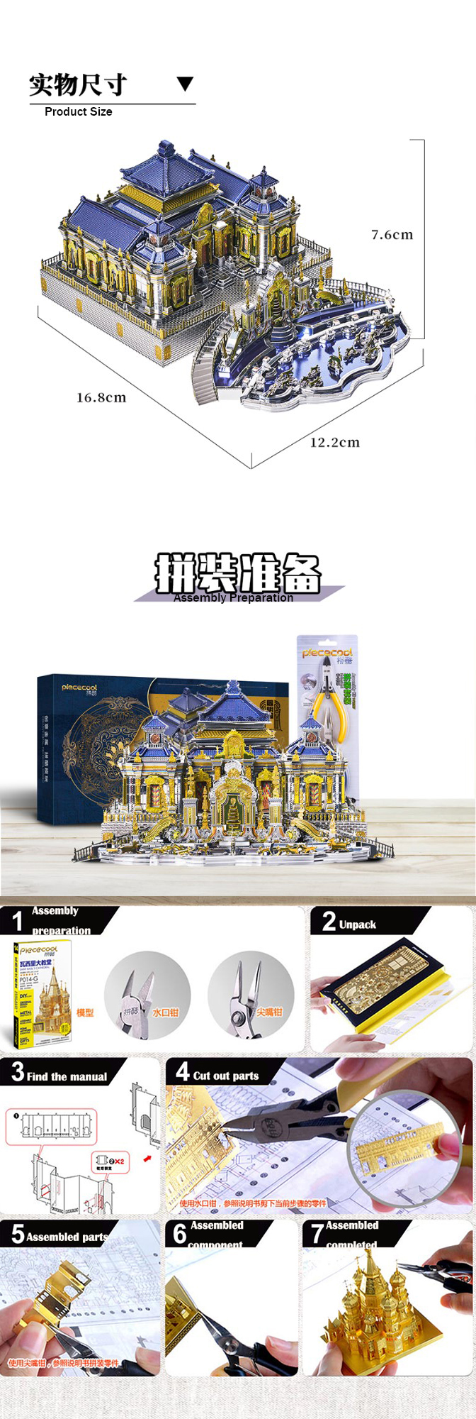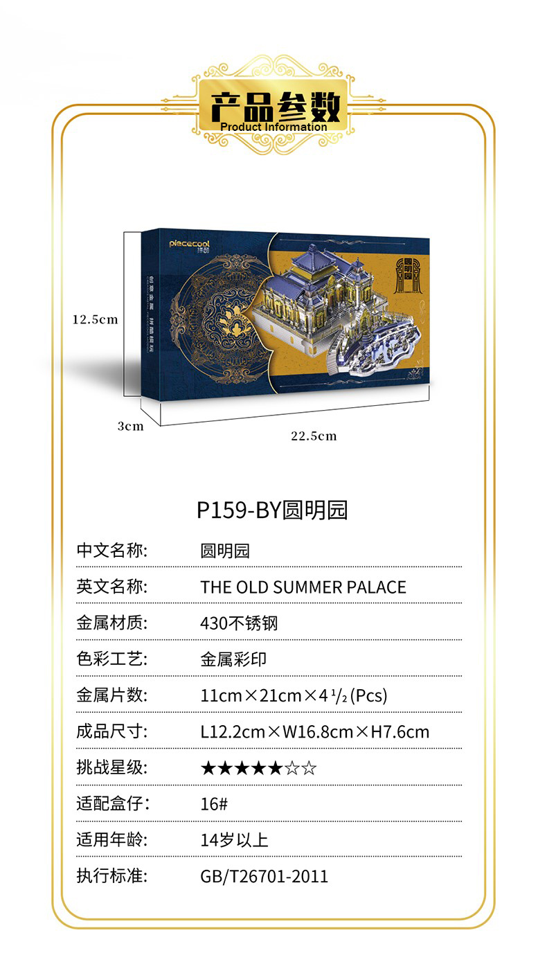 Piececool The Old Summer Palace 3D Metal Model Kits DIY Assemble Puzzle Laser Cut Jigsaw Toys P159-BY